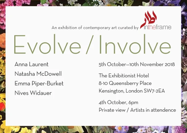 This second exhibition in London by InTheFrame, Evolve/Involve, brings together four female artists from across Europe and North America. Presented through five diverse but complementary media, the exhibition in its totality questions the nature of mankind and nature's evolution, rebirth, and transformation. Join us to reflect upon our natural environment through an inquisitive lens.